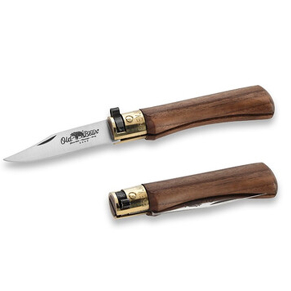 "Old Bear®" е нашата ексклузивна линия сгъваеми ножове, създадена в чест на 90-годишнината на нашата компания (1925-2015 г.), която се характеризира с прости и ергономични форми и е създадена чрез използване на традиционни производствени техники с високо ниво на ръчни умения.  Дръжката на ножа е от обработено с масло американско орехово дърво, а острието му от неръждаема стомана AISI420 (серия 9307) или въглеродна стомана C70 (серия 9306) е заточено с камък от ръцете на опитни и квалифицирани майстори. Ножът "Old Bear®" се предлага без пружина, което означава, че системата за заключване на острието му е снабдена с масивен предпазен пръстен (патент № 1187282, издаден през 1985 г. от компанията Todesco от Маниаго, която е активен партньор по този проект), който фиксира дръжката в отворено и затворено положение.  Острието на ножа се предлага с нашето лого "Old Bear®". ВАЖНА ЗАБЕЛЕЖКА Този продукт е произведен, като всички използвани суровини са подложени на ръчна обработка и процеси, които правят всеки един нож уникален, оригинален и нестандартен. Всички неравности по повърхността на ножа са допълнителна гаранция за неговата уникалност и ръчни процеси и не влияят на функционалността на ножа.