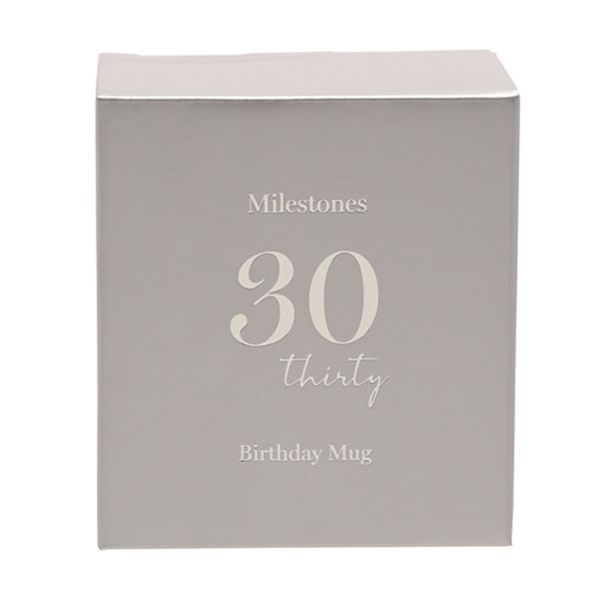 Помогнете на някой специален човек за вас да отпразнува 30 години със стил с тази бяла порцеланова чаша със сребърно фолио.