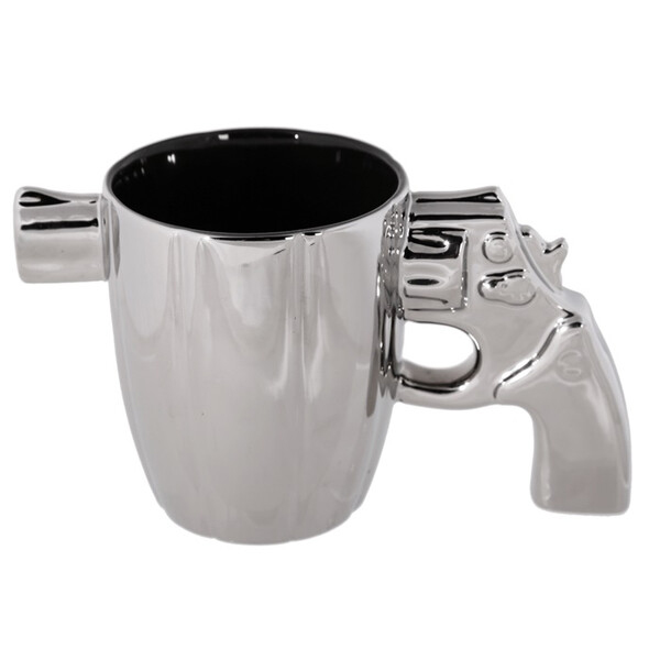 Сребриста керамична чаша с дръжка револвер, 375 мл
