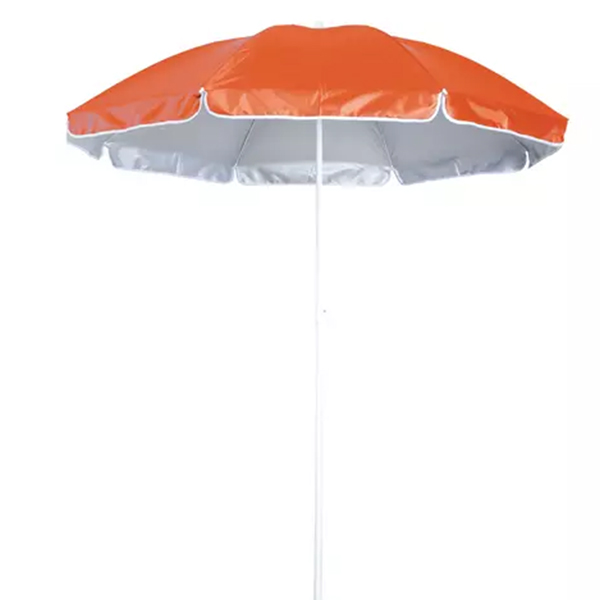 Найлонов плажен чадър с UV защита и чанта за носене. Сребърното UV покритие отразява слънчевите лъчи и ефективно предпазва от прекомерно слънце и вятър, което е изключително важно, ако искате да осигурите безопасна почивка под сянка.