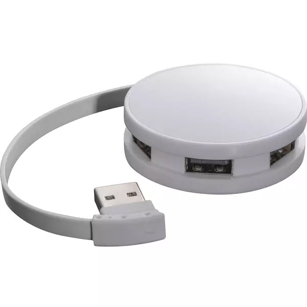 Кръгъл рекламен USB Хъб с 4 USB входа. Удобен и лесен начин да свържете до 4 устройства с USB свързаност, на бюрото до вас. Продуктът е подходящ за рекламни кампании, промоционални подаръци и фирмено брандиране.