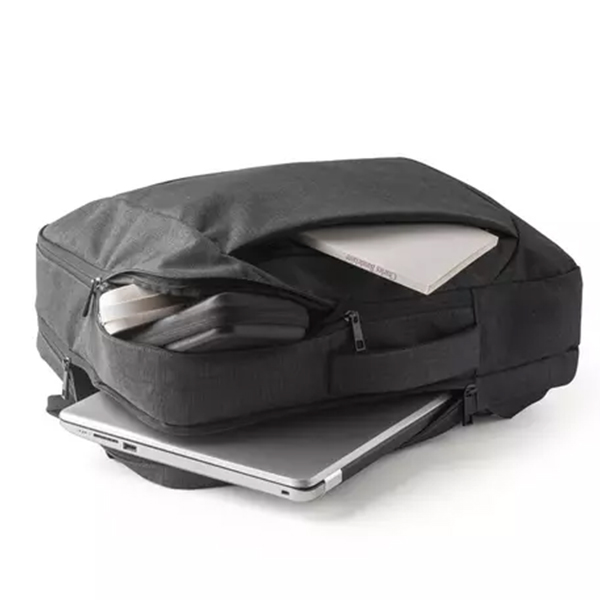 300D хибридна раница (2 в 1) с 2 режима на носене. Има режим на раница, с гръб и подплатени презрамки с механизъм, който ви позволява да ги скриете. Може да се използва и в режим на куфарче, с подсилена и удобна дръжка за ръка. Разполага с 2 основни отделения: 1 с джоб за лаптоп до 15,6" и друго с няколко многофункционални джоба.