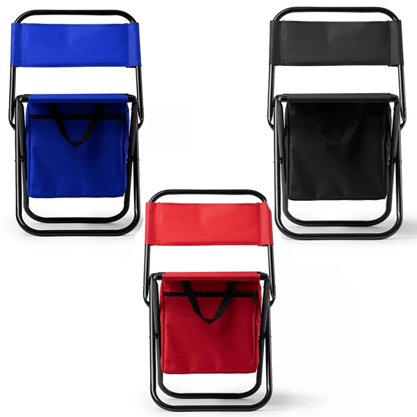 Удобен и практичен сгъваем стол, подходящ за къмпинг, риболов, фестивали и други активности на открито. Изработен от здрав полиестер, с метална рамка и вградено охладително отделение с изотермична подплата. Комбинира комфорт и функционалност, като предлага и място за съхранение на напитки и храна. Лесен за пренасяне и съхранение. Подходящ за персонализиране.