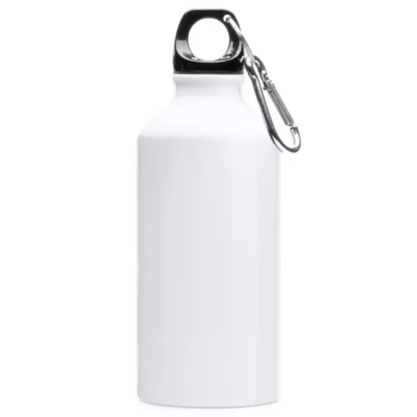 Метална спортна бутилка с карабинка със специално покритие поджодящо за сублимация.