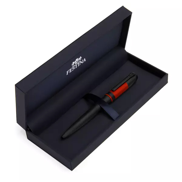 Най-продаваната химикалка от класическата серия на Festina е преоткрита в нова лимитирана капсулна версия: с иновативно покритие, което ѝ придава съвременно и луксозно излъчване. Повърхността е гравирана и покрита с матово черно покритие, което контрастира с гумирания матов лак на капачката, създавайки категорично модерен и графичен резултат.