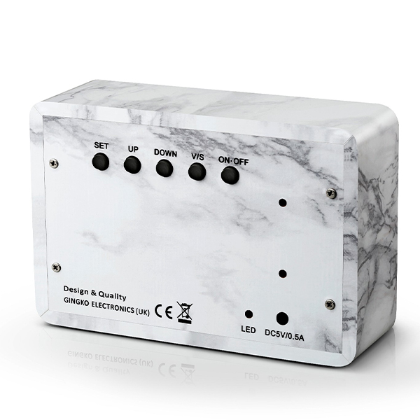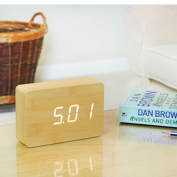 Времето може да бъде елегантно, интелигентно, ултра стилно и в същото време семпло с часовникът с аларма BRICK на Gingko Design. Този часовник може да Ви покаже последователно часа, датата и температурата с бели LED цифри върху дървен блок. За да се случи това е достатъчно да почукнете часовника или до него. Той ще се активира и при създаден шум напр. от щракане с пръсти или пляскане с ръце в близост и ще се угасне, ако стаята е тиха. Изглежда, че числата се носят върху прекрасното дървено блокче, но това е само половината от магията. Смятаме, че това е перфектният, уникален и интелигентен аксесоар за дома, особено ако не обичате ярката светлина в спалнята си през нощта. Но ако трябва да проверите часа, можете просто да щракнете с пръсти или леко да докоснете нощното си шкафче и часът ще се появи, така че вече не е нужно да се мъчите да търсите смартфона си в тъмното. Най-доброто от всичко е, че със своята вградена акумулаторна литиева батерия, той може да бъде поставен, където пожелаете.