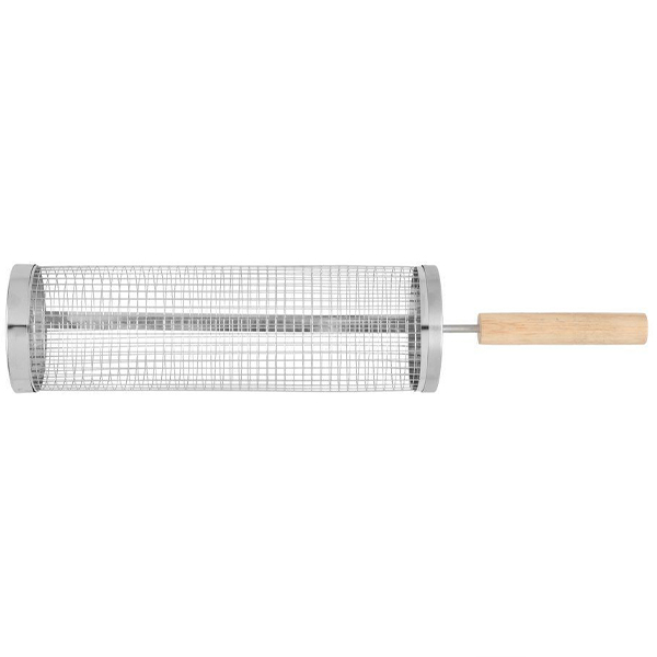 Въртяща се кошница за скара. Чрез завъртане на кошницата се постига равномерно готвене. Кошницата има дървена дръжка за по-лесно завъртане.