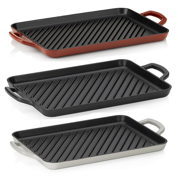 Calido е истинско бижу за Вашите кухня и маса! Специален дизайн и специални свойства - при серията съдове за готвене Calido не само дизайнът привлича внимание, но и резултатите от готвенето в тях. Характеризира се с емайлирано покритие отвътре и емайлиран градиент отвън. Предимствата на тази чугунена тава: Много добро запазване на топлината; Подходяща за температура до 300 °С; Равномерно разпределение на температурата; Оребрена повърхност; Дълъг живот. Барбекю по всяко време: грил плоча за котлон или фурна за печене на риба, месо или зеленчуци в кухнята - за газови, стъклокерамични, електрически и индукционни котлони. Оребрена емайлирана повърхност за печене с по-малко олио и мазнина за пържене, жлебове за оттичане на излишната мазнина, подходящи за фурна дръжки с големи отвори за захващане. Отлично запазване на топлината, равномерна разпределение на температурата, възможно силно нагряване, висока устойчивост на надраскване, добра устойчивост на абразия, устойчива на температура до 300 °C. Лесно почистване: топла вода, мека кърпа, подходяща за съдомиялна машина, енергийно ефективна благодарение на доброто усвояване и разпределение на топлината.