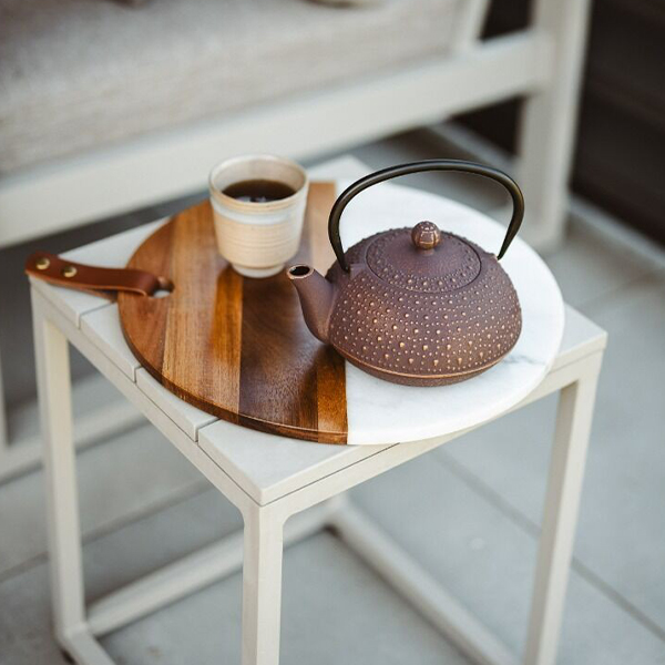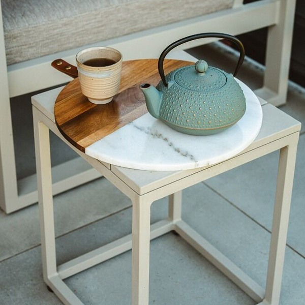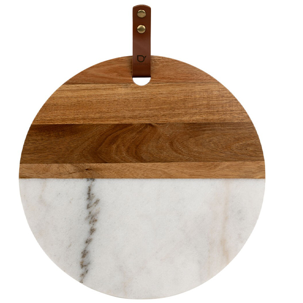 Красивата комбинация от мрамор и дърво придава на тази дъска за сервиране уникален вид. Може да се използва като плато за храна.