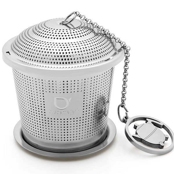 Почитател ли сте на насипния чай? Тогава този филтър за чай е незаменим. Филтърът е снабден с подложка, за да се предотврати протичане по работния плот. Верижката с висулка Duet® Bella Round е стилен детайл.