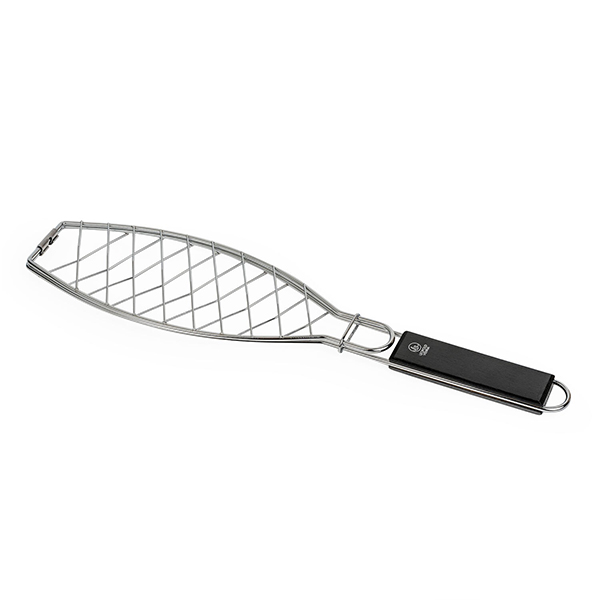 Печете риба на скара? Тогава тази решетка за риба е незаменима. Лесна е за употреба. Захващате рибата между двете скари и я затваряте с пръстен. Решетката за риба е изработена от неръждаема стомана и има голяма дървена дръжка.