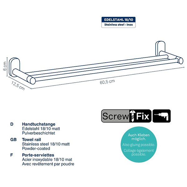 KELA Двойна закачалка за кърпи за стенен монтаж “Alеssio“ - черен