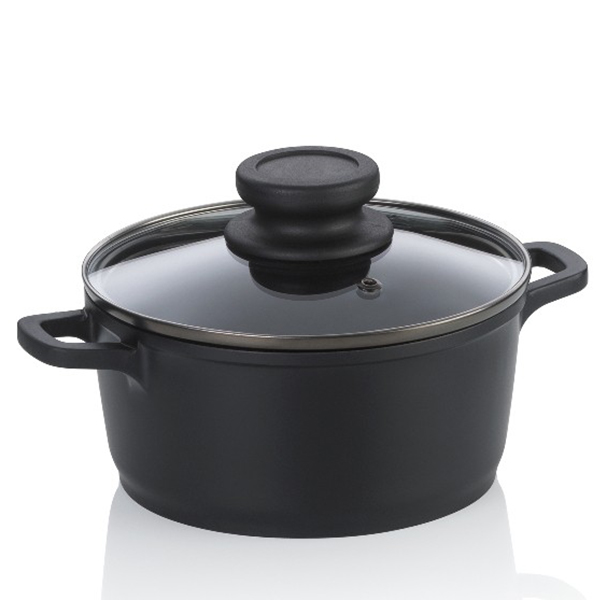 Открийте идеалното допълнение към Вашата кухня: серия съдове за готвене Atura, изработени от лят алуминий с усъвършенствано, двуслойно керамично покритие. Тази серия впечатлява не само с отличните си резултати при готвене, но и със своя състав – тя е напълно без PFOA и PTFE. - Отлична производителност и издръжливост: Иновативното керамично покритие Ви предлага дълготраен незалепващ ефект, който превръща готвенето и пърженето в удоволствие. Благодарение на високата си устойчивост на надраскване и първокласна устойчивост на абразия, съдовете остават в перфектно състояние за дълго време, дори при редовна употреба. Безопасни и стабилни: Дръжките осигуряват висока стабилност и приятна температура при готвене. Оптимално разпределение на топлината за перфектни резултати: Основата на съдовете гарантира оптимално разпределение на топлината, така че Вашата храна да се приготвя равномерно. Независимо дали на газов, стъклокерамичен, индукционен или електрически котлон - тези съдове са подходящи за всички видове котлони. Лесно почистване: След готвене съдовете се почистват лесно, което Ви спестява време и усилия. Превърнете готвенето в истинско изживяване - с тигана от лят алуминий, без който никоя кухня не бива!