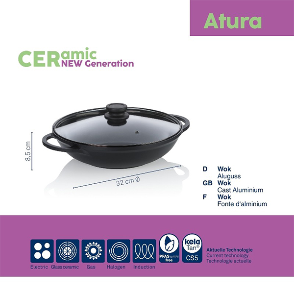 KELA Уок с керамично покритие с капак “Atura“ - Ø 32 см.