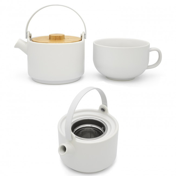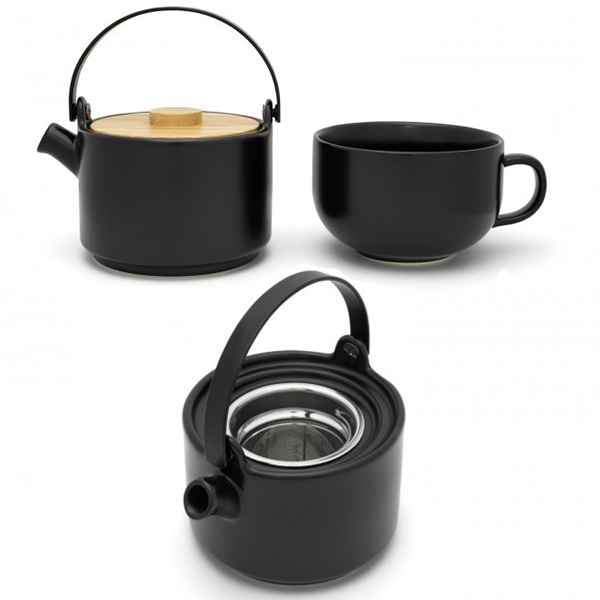 Миг за себе си? Направете хубава чаша чай за нула време с този прекрасен комплект чай. Чайникът и чашата са изработени от керамика, а капакът е от бамбук. Той е с вместимост 0,5 литра, а комплектът се предлага в бяло и черно. Наслади се на ароматна чаша следобеден чай!