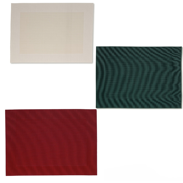 Търсите подложки, които изпълняват предназначението си и защитават дървената или стъклената повърхност на Вашата маса за хранене? Тъканите пластмасови подложки печелят точки с висококачествения си външен вид. Обширната цветова палитра означава, че можете да намерите подходящ вариант за всеки стил на интериорен дизайн. И ако нещо се обърка по време на хранене, можете лесно да почистите подложките с кърпа или гъба и малко вода.