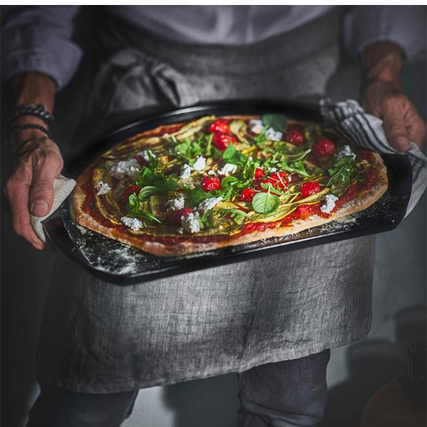 Отдайте се на изкуството на приготвянето на пица с Pizza Station – първокласен керамичен камък за пица, който превръща вашата фурна в професионална пицария, осигурявайки неизменно изключителни резултати с всяко печене. Безкомпромисно качество, професионални резултати - Pizza Station гарантира, че вашите пици ще се изпекат перфектно с хрупкава, златиста коричка и ще бъдат равномерно изпечени. Дебелата керамична повърхност на Pizza Station задържа топлината мигновено, осигурявайки бързо готвене, като същевременно запазва влагата в тестото и предотвратява изсъхването. Безупречната ѝ работа я прави идеалния избор за организиране на пица партита, където множество пици се пекат безпроблемно една след друга. Специалният страничен ръб улеснява плъзгането на пицата, предотвратява разливане и помага да поддържате фурната си чиста и без трохи. Издръжлива, незалепваща и лесна за почистване, плочата за пица е подходяща за съдомиялна машина. Ръчно изработена във Франция от естествена глина, плочата за пица издържа на интензивната топлина както на фурни, така и на барбекюта.