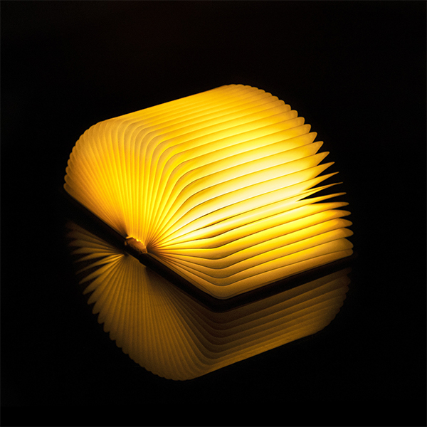 Колекцията от естествено дърво Smart Book Light със сигурност е страхотно произведение на изкуството за всеки дом.  Когато е затворена, тази Smart Book Light изглежда като дървена, кожена или ленена книга, но когато се отвори, се трансформира в скулптурна лампа, излъчваща прекрасна топла LED светлина през страниците.  Този естетически приятен дизайн е допълнен със скрити магнити на кориците от двете страни, така че можете да  отворите лампата на цели 360 градуса. Прекрасните, меки на допир страници Tyvek, са устойчиви на разкъсване и водоустойчи и са осветени от висококачествени LED диоди. Тази динамична, многофункционална лампа се доставя с USB кабел за зареждане.