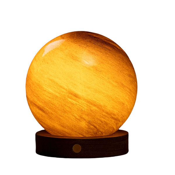 В тиха вечер след дълъг работен ден си представете, че се свивате в леглото с любимата си книга и топла напитка. Мекото сияние на лампа AstraGlass Light изпълва стаята, нейното ръчно рисувано стъклено кълбо хвърля очарователни сенки, които Ви напомнят за спокойна, звездна нощ. Независимо дали предпочитате живата и непрекъснато променяща се игра на 7 въртящи се RGB светлини или спокойния блясък на бяла светлина, тази лампа се адаптира към настроението Ви с просто докосване на медния тъч бутон. Задръжте бутона по-дълго и светлината леко намалява или става по-ярка, предлагайки перфектната атмосфера за всеки момент. С AstraGlass Light можете да създадете всякаква атмосфера, която да отговаря на Вашето настроение и да създадете перфектната вечер за Вашата нощ на релакс.  Лампата AstraGlass Light се вписва безпроблемно във всяка обстановка, от уютен кът за четене до просторна всекидневна. Нейните четири отличителни покрития – Galaxy Breeze, Sandstorm, Polar Cloud и Stellar Ocean – добавят нотка космическо чудо към Вашия домашен декор. Тази лампа е идеална за всеки, който е очарован от прекрасния природен феномен на нашия свят.  Екологичната основа на лампата, изработена от FSC-сертифицирано дърво от американски орех, допълва нейния небесен дизайн. Ще се впише идеално в тъмния ъгъл на библиотека или дори на нощното шкафче. Ръчно издуханият стъклен глобус показва занаятчийска изработка, като гарантира, че всяка лампа е уникална като самите звезди. USB-C порта за зареждане осигурява удобство.  Сега можете да превърнете Вашето любимо място в убежище, където елегантността среща природата. С лампата AstraGlass Light всяка вечер се превръща в среща със звездите, осветявайки тихите, вълшебни моменти на живота и внасяйки нов смисъл в думите комфорт и релакс.