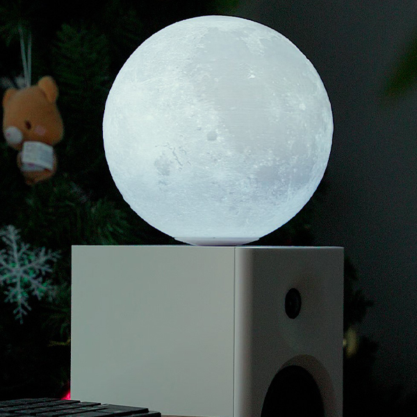 Представяме ви Smart LunaSpin Lamp, преносима 3D отпечатана лампа Луна, която се върти върху всяка равна повърхност. Лампите се предлагат в два удобни размера: мини (12 см) за по-малки пространства и голям (18 см) за по-големи. В сърцето на всяка лампа е 3D отпечатана луна. Луната, поставена върху солидна орехова основа, не е неподвижен орнамент, а динамичен елемент, който вдъхва живот на всяка стая. Глобусите могат да се въртят сами, имитирайки движението на Луната, но могат да се държат и статични. Осветлението е ключов аспект на тези лампи. С нежно докосване на Луната можете да превключвате между три режима: топла светлина за уютна атмосфера, студено бяло за по-ясна, по-ярка светлина и смесено топло бяло за балансирано, меко осветление. Тази гъвкавост прави лампите идеални за различни помещения и настроения, от релаксираща вечер у дома до фокусирана среда в офиса. Иновативният дизайн обхваща и системата за зареждане. Глобусите се захранват от авангардно магнитно безжично зарядно устройство, което осигурява модерен външен вид. Основата, която може да се зарежда чрез USB-C кабел, може да се похвали с дълъг живот на батерията, което гарантира, че лампата остава надежден източник на светлина и красота. Независимо дали е поставена на нощно шкафче, бюро или лавица, Smart LunaSpin Lamp е повече от решение за осветление. Това е начало на разговор, произведение на изкуството и свидетелство за красотата на смесването на технологията с дизайна. Това е идеален избор за тези, които искат да добавят нотка изтънченост и иновация към своето лично или професионално пространство.
