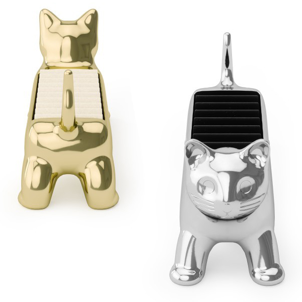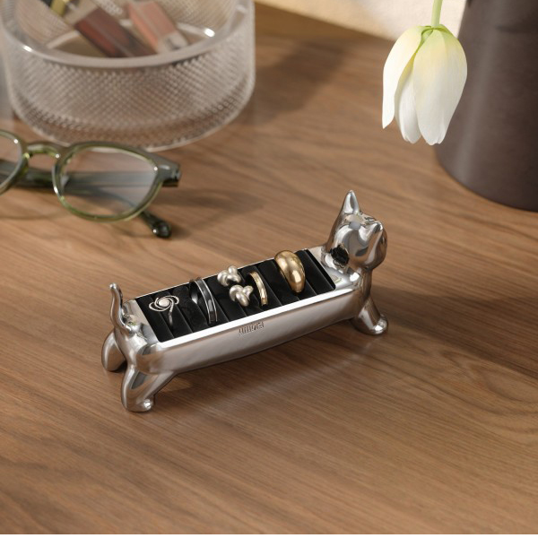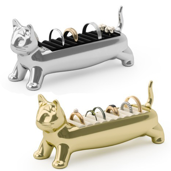 Запознайте се с Ali Cat, поставка за пръстени, вдъхновена от игривия чар на породата котка манчкин. Проектирана с кадифени възглавнички, за да предпазят пръстените Ви от надраскване и надраскване, Ali Cat може да побере до 9 пръстена, което я прави едновременно практична и очарователна. Независимо дали е поставена на нощно шкафче, скрин или бюро, този причудлив аксесоар добавя нотка котешко забавление към всяко пространство. Ali Cat е най-добрият подарък за всеки любител на котки. Изработена от тежък лят метал с полирано покритие в хром или месинг, този очарователна поставка за пръстени е едновременно здрава и стилна. Всяка метална част е внимателно и индивидуално полирана на ръка, което гарантира, че всеки артикул има свой уникален характер и блясък. Възможни са леки вариации или несъответствия в покритието поради ръчната изработка на продукта.