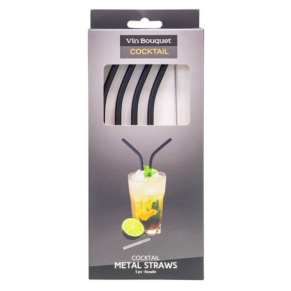 Vin Bouquet Коктейлни метални сламки с четка за почистване - цвят черен мат