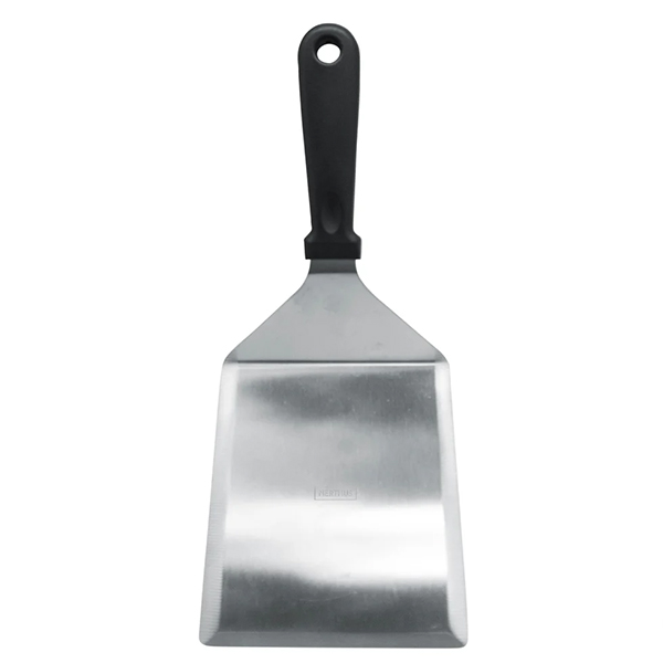 Професионалната шпатула Nerthus от неръждаема стомана е идеалният инструмент за прецизно и удобно готвене. Изработена от висококачествена неръждаема стомана, тя предлага изключителна устойчивост на топлина и корозия, осигурявайки издръжливост дори при интензивна употреба. С широчината си 15,5 x 12,5 см, тази шпатула улеснява обръщането, повдигането и сервирането на месо, риба, зеленчуци и други директно върху скари или тигани. Гладкият ѝ дизайн предотвратява залепването на храната, което я прави лесна за боравене и почистване. Ергономичната дръжка осигурява удобен и сигурен захват, намалявайки умората по време на дълги периоди на готвене. Подходяща за миялна машина, тази професионална шпатула ще се превърне в незаменим помощник както за взискателните готвачи, така и за любителите на скара