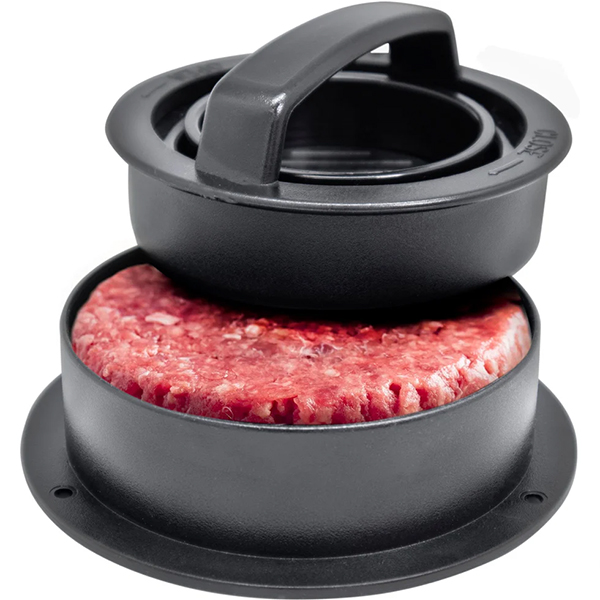 Пригответе перфектни домашни бургери с тази компактна преса, която може да се подрежда една в друга. Включва 3 функции: Малка основа + малка преса: за стандартни бургери: Голяма основа + голям натиск: за XL бургери; Допълнителна приставка: за приготвяне на пълнени бургери (сирене, зеленчуци и др.) Сглобяем дизайн: всички части пасват една върху друга за лесно съхранение; Безопасен материал: без BPA, издръжлив и безопасен за храна; Лесно почистване: разглобяем и подходящ за съдомиялна машина; Идеална за любителите на домашно приготвени бургери. Създавайте, пълнете и се наслаждавайте на свои собствени рецепти с професионални резултати!