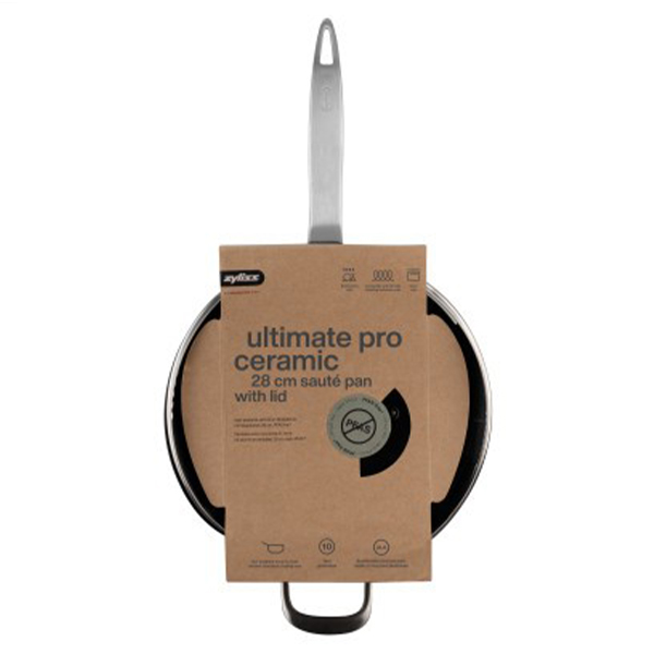 Подобрете готвенето си с керамичния тиган Zyliss Ultimate Pro Ceramic. Този тиган е идеален за приготвяне на вкусни ястия за приятелите и семейството Ви. С най-здравото керамично незалепващо покритие на Zyliss, тиганът осигурява готвене без усилие и бързо почистване. Устойчиво проектиран с корпус от рециклиран алуминий, основа от неръждаема стомана за равномерно разпределение на топлината и удобен чучур за изливане, който улеснява сервирането или пренасянето на Вашите ястия. Безопасен за контакт с храна, съдомиялна машина и фурна до 220°C, този тиган е съвместим с всички котлони. Неговата изключителна производителност и екологичен дизайн го правят задължителен за тези, които искат най-доброто. Изпитайте радостта от готвенето без усилие и вкусните резултати!
