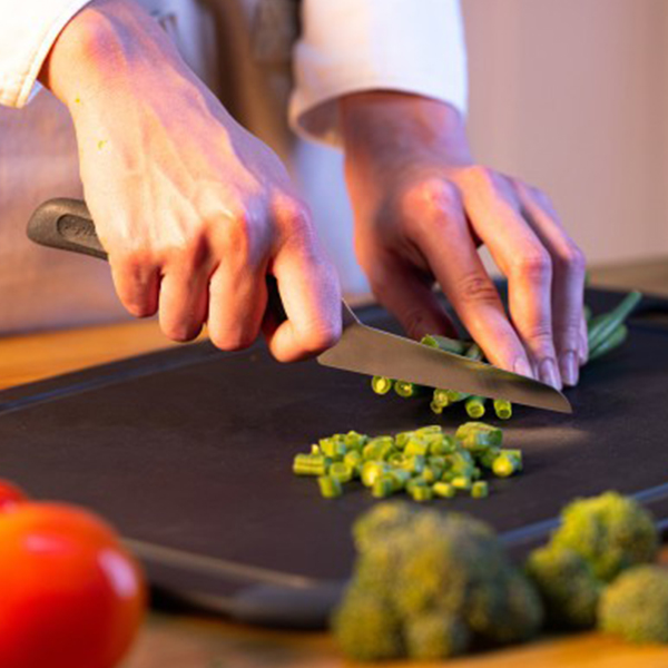 Представяме Ви новата серия кухненски ножове Zyliss - прецизни инструменти, които съчетават функционалност и устойчивост. Подходящи са за съдомиялна машина и са оборудвани с лесни за поставяне предпазители за острието за сигурно съхранение. Ножовете разполагат с иновативен, ергономичен дизайн на дръжката, използващ екологичен материал от пшенична слама, намалявайки употребата на пластмаса с до 20%.