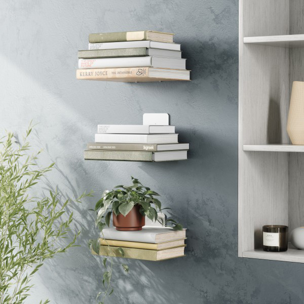 Скритите плаващи рафтове за книги ще преобразят начина, по който съхранявате и излагате любимите си книги. Подреждайки ги върху здравия метален L-образен рафт, рафтът ще се скрие зад книгите – това им позволява да изглеждат така, сякаш се носят на стената ви. За разлика от конвенционалните свободно стоящи рафтове за книги, елегантният дизайн на плаващите рафтове ви дава възможност да използвате пространството на стената, което остава неизползвано Рафт, предназначен не само за излагане на книги, може да се използва и за излагане на други предмети като растения в саксии, DVD-та, рамки за снимки, декорации, колекционерски предмети и други.