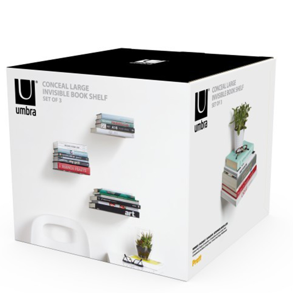 UMBRA Комплект от 3бр.скрити рафтове за книги (голям формат) - цвят сребро
