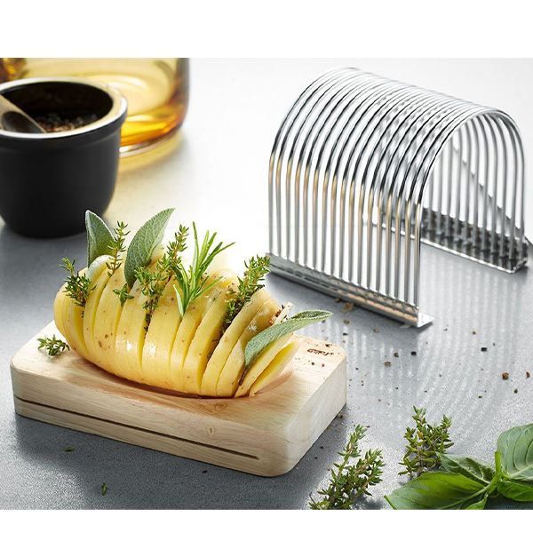 Харесвате ли неустоимо хрупкави картофи по шведски? Няма проблем, защото с HASSEL картофите могат лесно да бъдат нарязани в перфектна ветрилообразна форма, без риск от случайно разрязване на картофа. Перфектен за откриване на творчески рецепти с картофи и ароматни пълнежи.