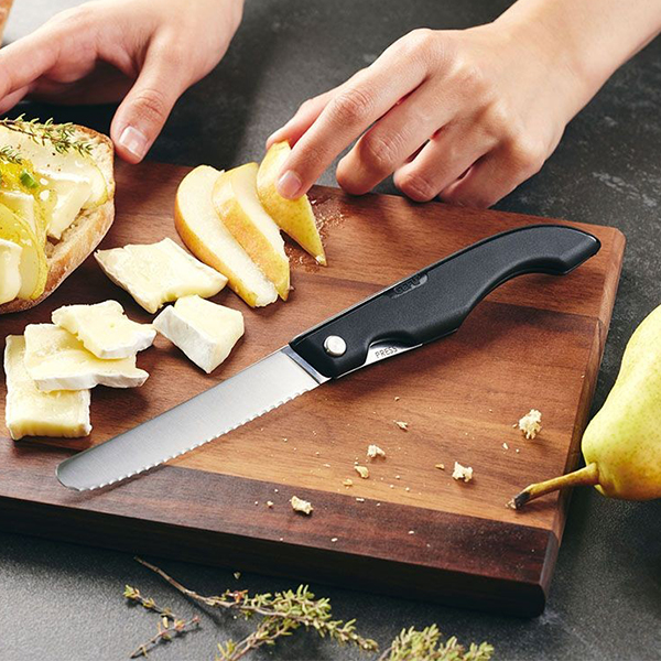 Практичен за използване и в кухнята и когато сте на път. За нарязване на плодове, зеленчуци, хляб, колбаси, закуски и много други.