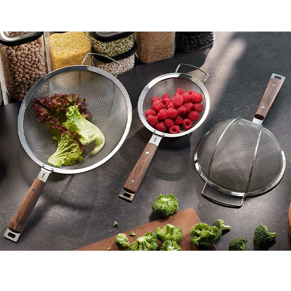 С елегантна дръжка от орехово дърво PASSO не само впечатлява с атрактивния си дизайн, но и с високото си качество - ситото винаги запазва формата си перфектно.