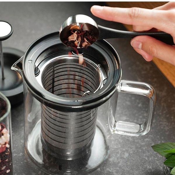 Кана / чайник T-PREP е перфектната комбинация от елегантност и функционалност. Иновативната функция за спиране на запарването превръща приготвянето на чай в удоволствие. След изтичане на желаното време за запарване, просто натиснете листата от чай надолу в затворената част на филтъра с помощта на пресата и по този начин сприрате процеса на запарване според желаната сила.