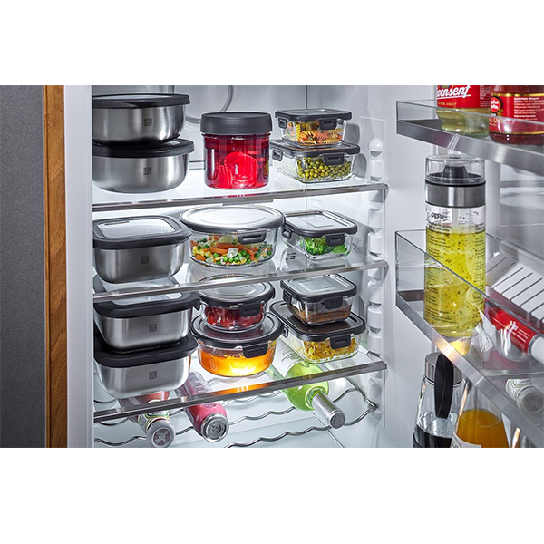 Eлегантните кутии за съхранение на храна "PROVIDO" внасят ред във всеки шкаф, хладилник или фризер. Херметични, устойчиви на течове и миризми, те запазват храната свежа за дълго време. Могат да се използват и в микровълнова фурна благодарение на специалния клапан в капака.