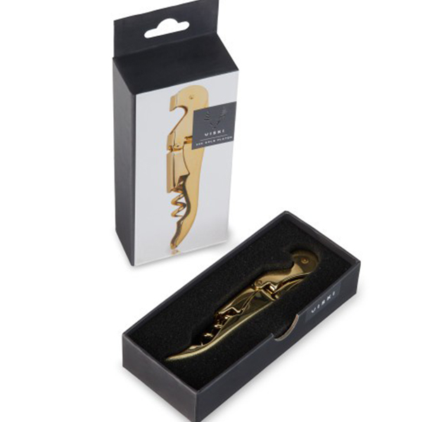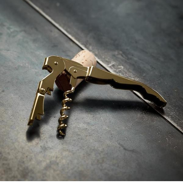 Този тирбушон за вино е с двоен лост, пет степенен свредел, отварачка за бутилки и интегриран в дръжката нож за фолио - всичко това е покрито с истинско 24-каратово злато.