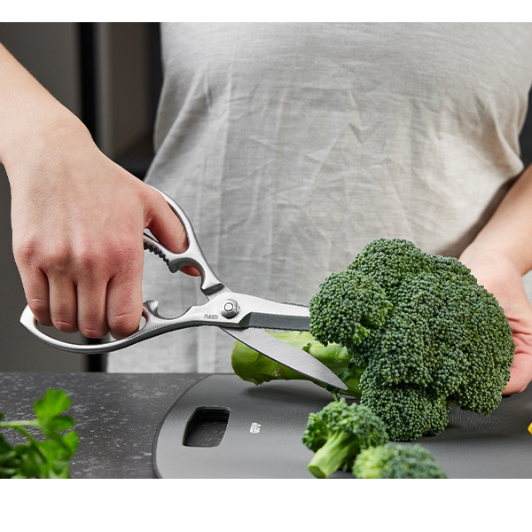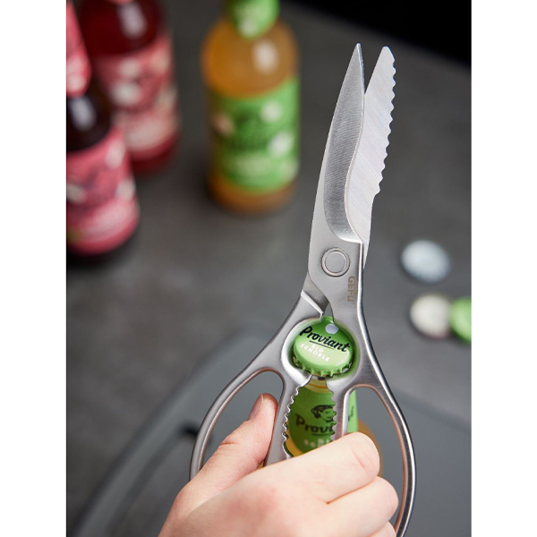 Кухненските ножици PRIMERA са инструмент, който със сигурност ще се окаже незаменим във вашата кухня. Тяхната функционалност ще ви изненада приятно, защото те са страхотни в много ситуации. Благодарение на тях можете да режете кости от домашни птици, да чупите ядки, да почиствате риба и дори да отваряте бутилки.