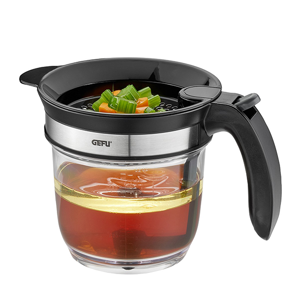 FLUIDO премахва мазнините от горещи супи, бульони и сосове. Просто изсипете в каната: мазнината ще се издигне нагоре, а обезмаслената течност ще остане на дъното, откъдето може лесно да се изсипе чрез натискане на бутон. С FLUIDO можете направите и вкусни палачинки - като лесно и бързо ще дозирате тестото в горещия тиган.