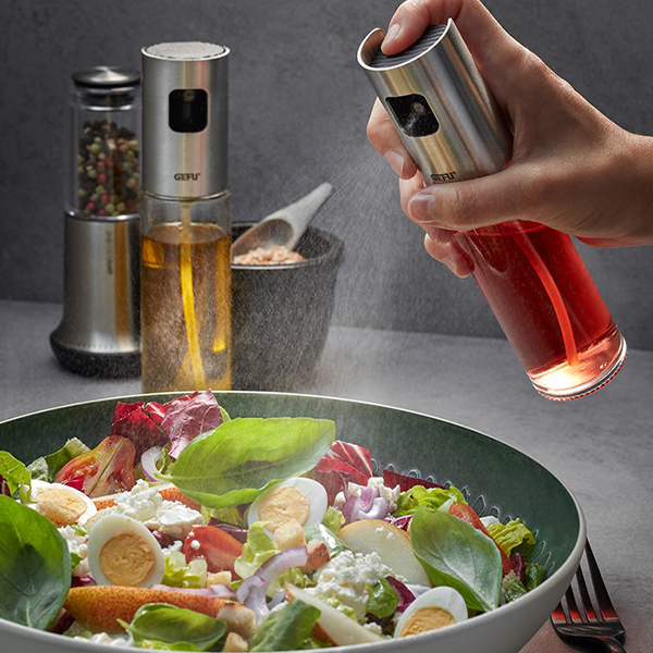 Елегантното дуо спрей дозатори NEVA позволява фино и равномерно дозиране на оцет и олио само с натискането на един бутон. Перфектни за здравословна диета с ниско съдържание на мазнини, а също и като помощник при печене и готвене.