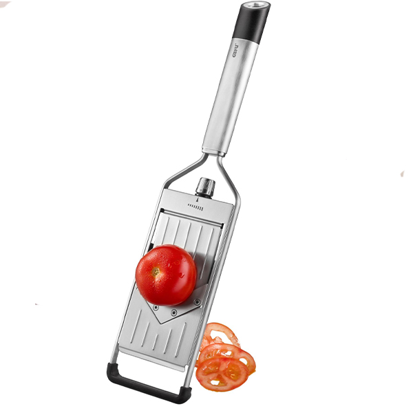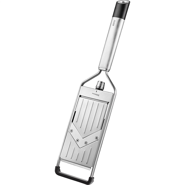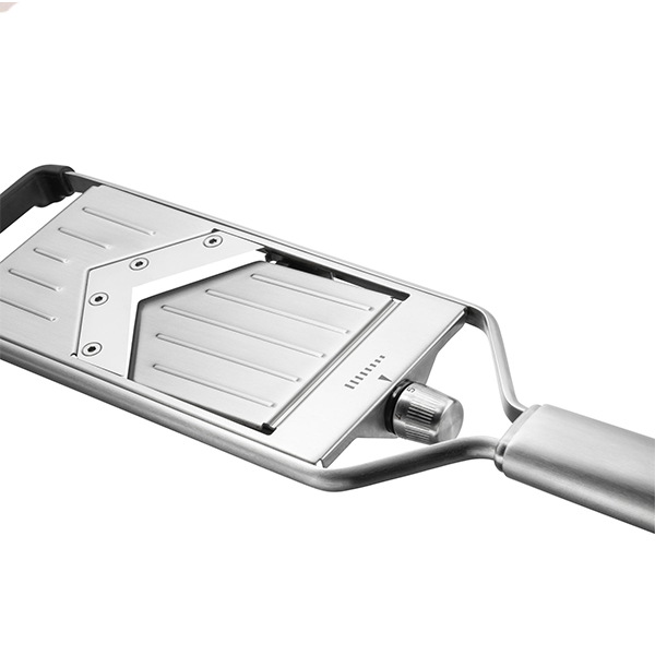 Удобно и прецизно V-образното ренде PRIMELINE нарязва плодовете и зеленчуците без усилие на филийки с дебелина от 0 - 5 мм. Лесното и интуитивно регулиране (с помощта на циферблат) позволява дебелината на филийките да се адаптира точно към изискванията в кухнята, независимо дали за тънък като лист картофен чипс или по-дебели зеленчукови филии за гювечи и салати. Неговото висококачествено, ултра-остро V-образно острие позволява както крехките домати, така и твърдите кореноплодни зеленчуци да бъдат нарязани бързо, перфектно и без усилия.