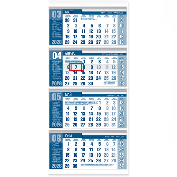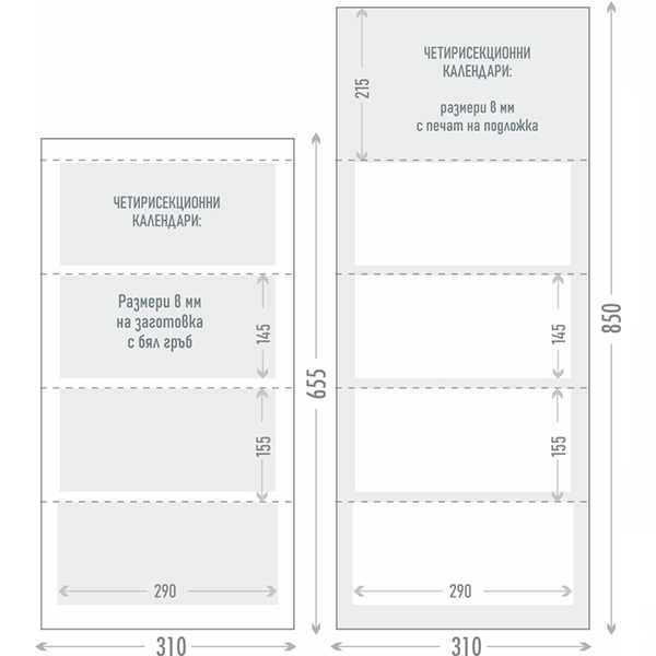 - Четирисекционен работен календар, отпечатан на 70г/м2 офсетова хартия