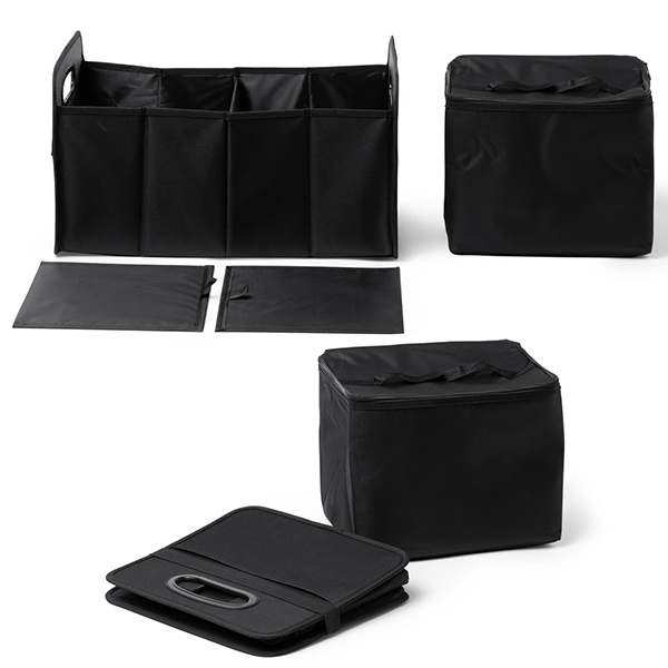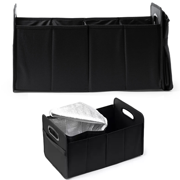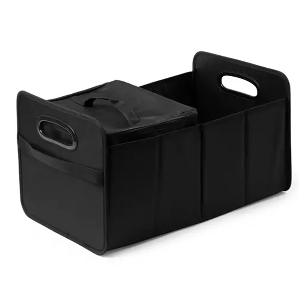 Практичен и устойчив органайзер за багажник, изработен от полиестер 600D с подсилени дръжки. Разполага с две основни отделения и външен джоб за допълнителни аксесоари. Включва подвижен охладител с обем 12 литра и изотермична вътрешност. Лесно се сгъва при необходимост от компактен транспорт или съхранение. Размери: 50×28×32.5 cm. Отличен избор за автомобилни кампании и промоции на застрахователни компании – впечатлява с функционалност и трайно рекламно присъствие.