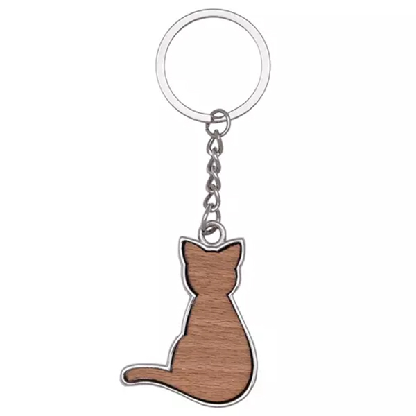 Ключодържател комбинация от метал и бамбук с формата на коте.