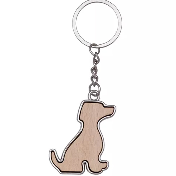 Ключодържател комбинация от метал и бамбук с формата на куче.
