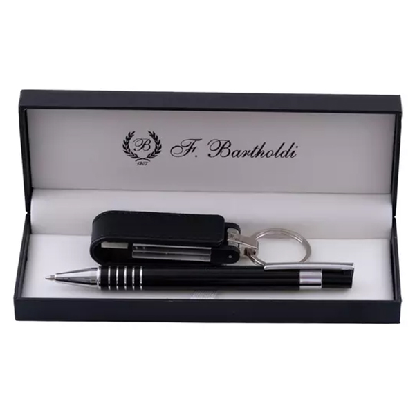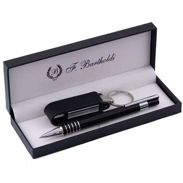 Луксозен комплект съчетаващ метална химикалка и USB кожена флашка с капацитет 32GB.