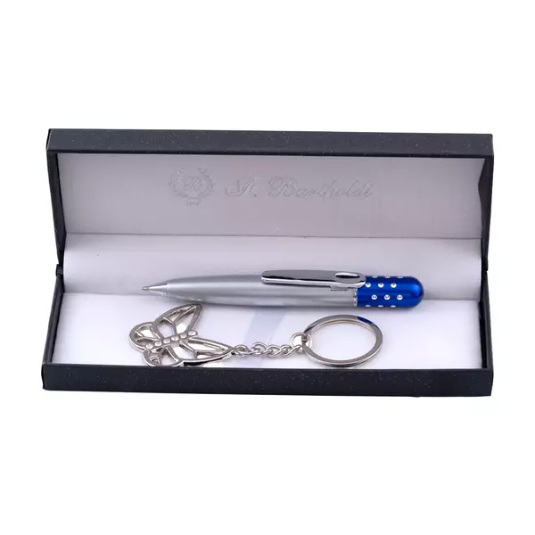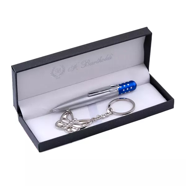 • Дамски комплект съчетаващ мини метална химикалка с циркони и колие