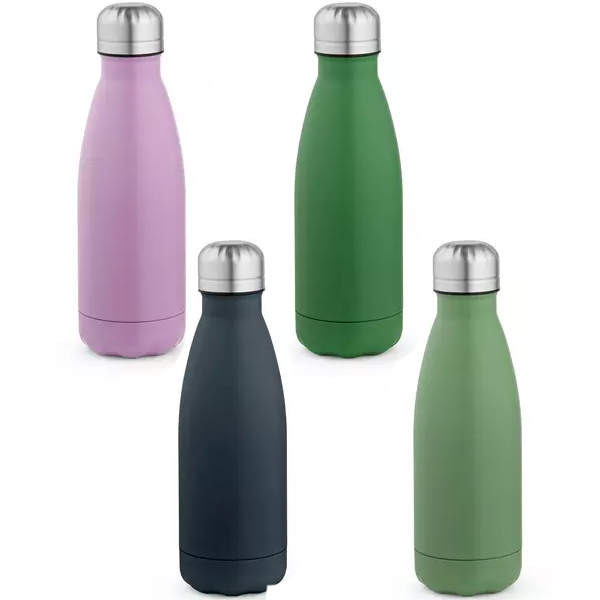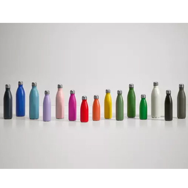 Бутилка 430 ml, изработена от рециклирана неръждаема стомана с елегантно матово покритие. Двойно изолираната стена поддържа напитките ви топли в продължение на 14 часа и студени в продължение на 48 часа. Бутилката е херметична и подходяща за съдомиялна машина. Привлекателен аксесоар, който ще ви помогне да останете хидратирани. Предлага се в 4 различни обема и във варианти с метално покритие, матово покритие и за сублимация. Доставя се в екологична крафт кутия.