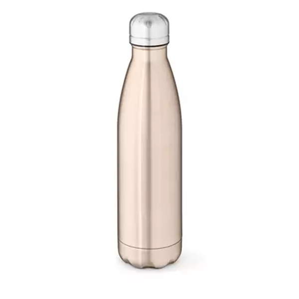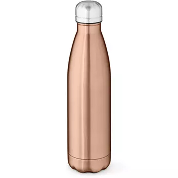 Бутилка 535 ml, изработена от рециклирана неръждаема стомана с луксозно лъскаво метално покритие. Двойно изолираната стена поддържа напитките ви топли в продължение на 14 часа и студени в продължение на 48 часа. Бутилката е херметична и подходяща за съдомиялна машина. Привлекателен аксесоар, който ще ви помогне да останете хидратирани. Предлага се в 4 различни обема и във варианти с метално покритие, матово покритие и за сублимация.